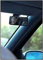 - wird auf die Sonnenblende geklemmt, hält die Rückbank gut in Sicht!